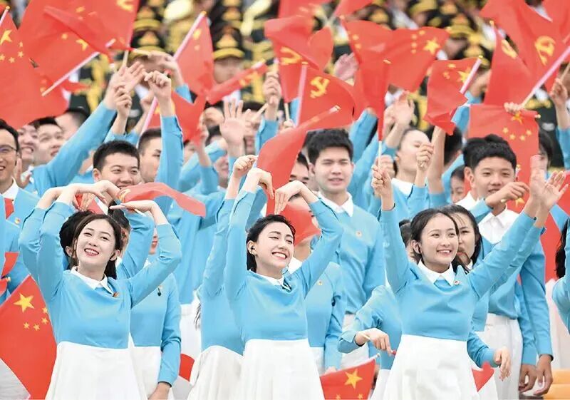 奋进新征途、立功新时期。图为庆祝中国共产党成立100周年大会上的青少年代表。 新华社记者 李尕/摄